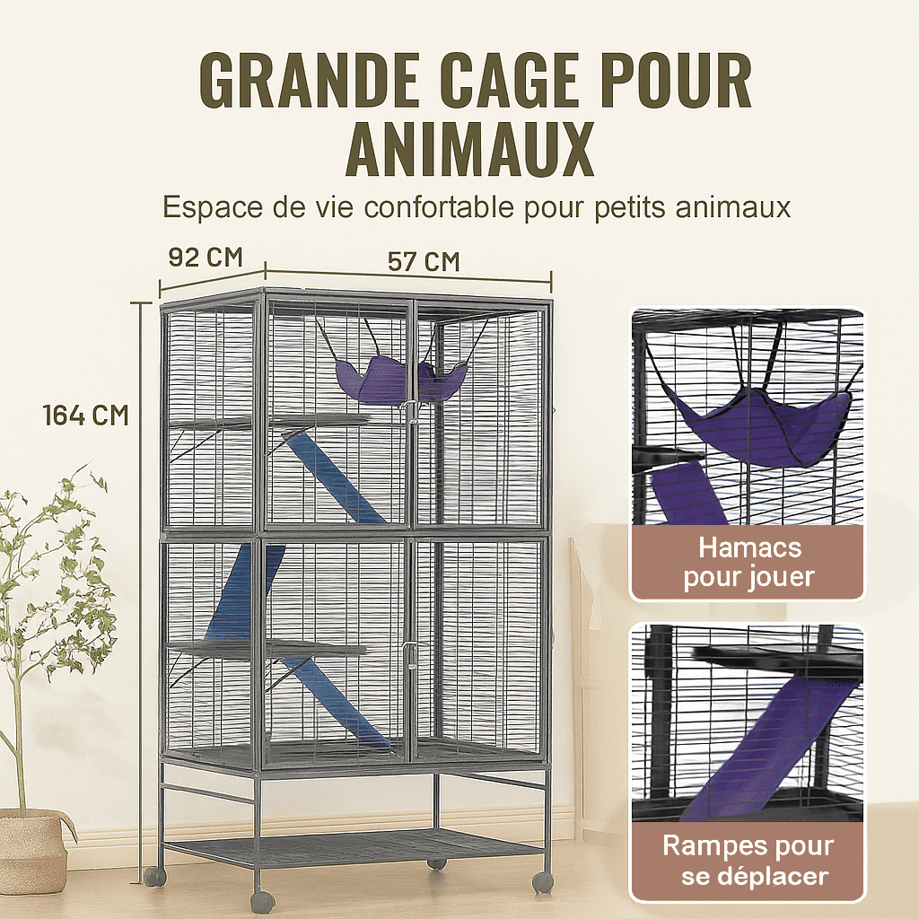 | Dimensions (164 x 92 x 57 cm) | Espace généreux pour 2 à 6 rats |