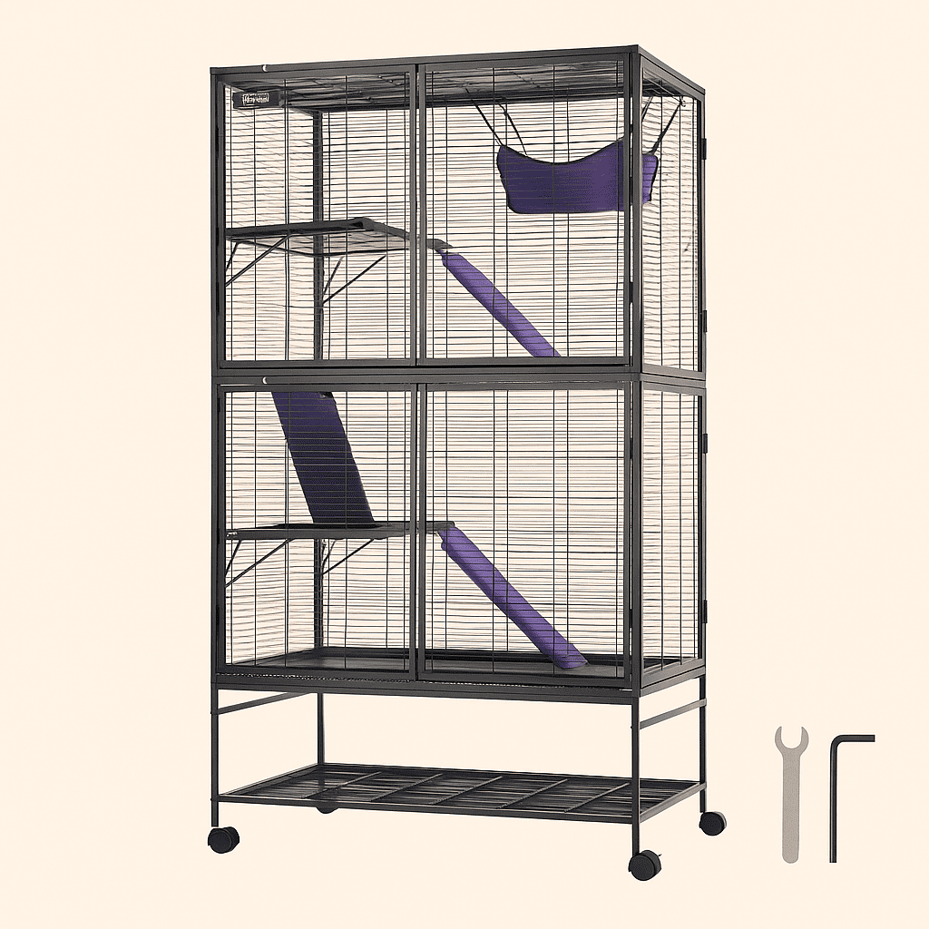 Vous ne pourrez plus vous en passer de cette cage conçue pour durer. Sa métal résistant et antirouille supporte jusqu’à 20 kg par niveau, idéale pour 2 à 6 rats grâce à ses dimensions généreuses (164 × 92 × 57 cm). Fini les évasions grâce au verrou à torsion des grandes portes à double couche, garantissant une sécurité optimale même pour les animaux les plus malins. Les rampes antidérapantes facilitent les déplacements entre les 4 niveaux.